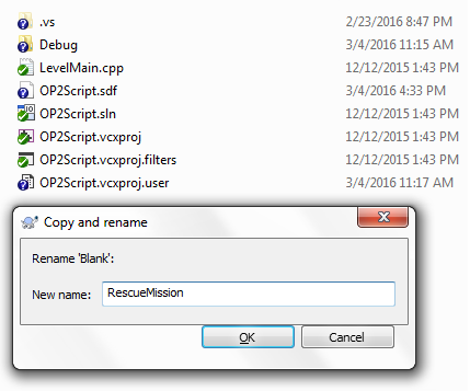 Whether a scenario is created through SVN copy or from a blank Visual Studio project, it is best to work within a local copy of the Outpost 2 repository. New scenarios should be placed under Outpost2SVN\LevelsAndMods\trunk\Levels. Create a sub directory under Levels for your new scenario.
